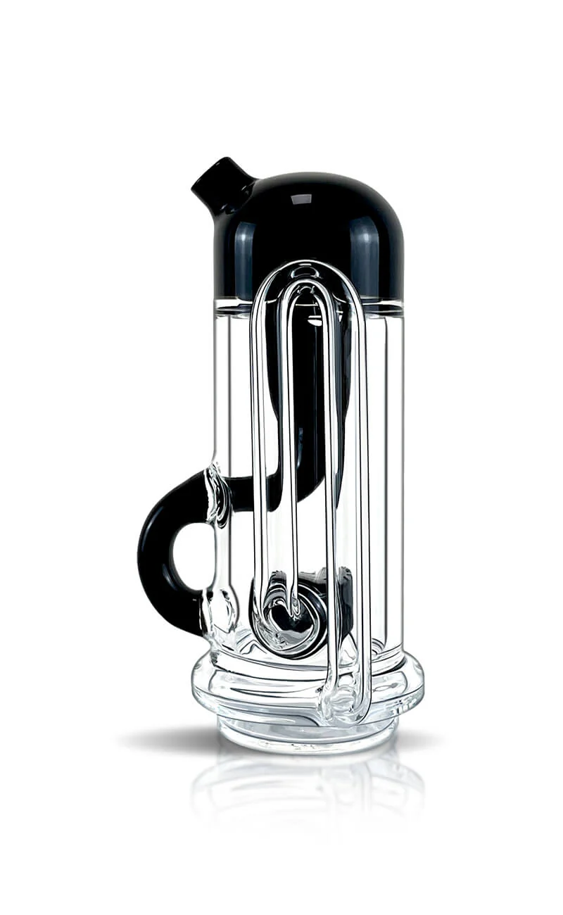 The Hourglass is a specially designed glass top for Bomb erig, featuring an upgraded circulation function. Cloud flows through a curved tube on the outside of the glass and enters the interior, where newly upgraded air holes provide a smoother dabbing experience and better flavor. The unique hourglass design not only efficiently directs the water towards the mouthpiece but also adds an element of fun to your dabbing experience.